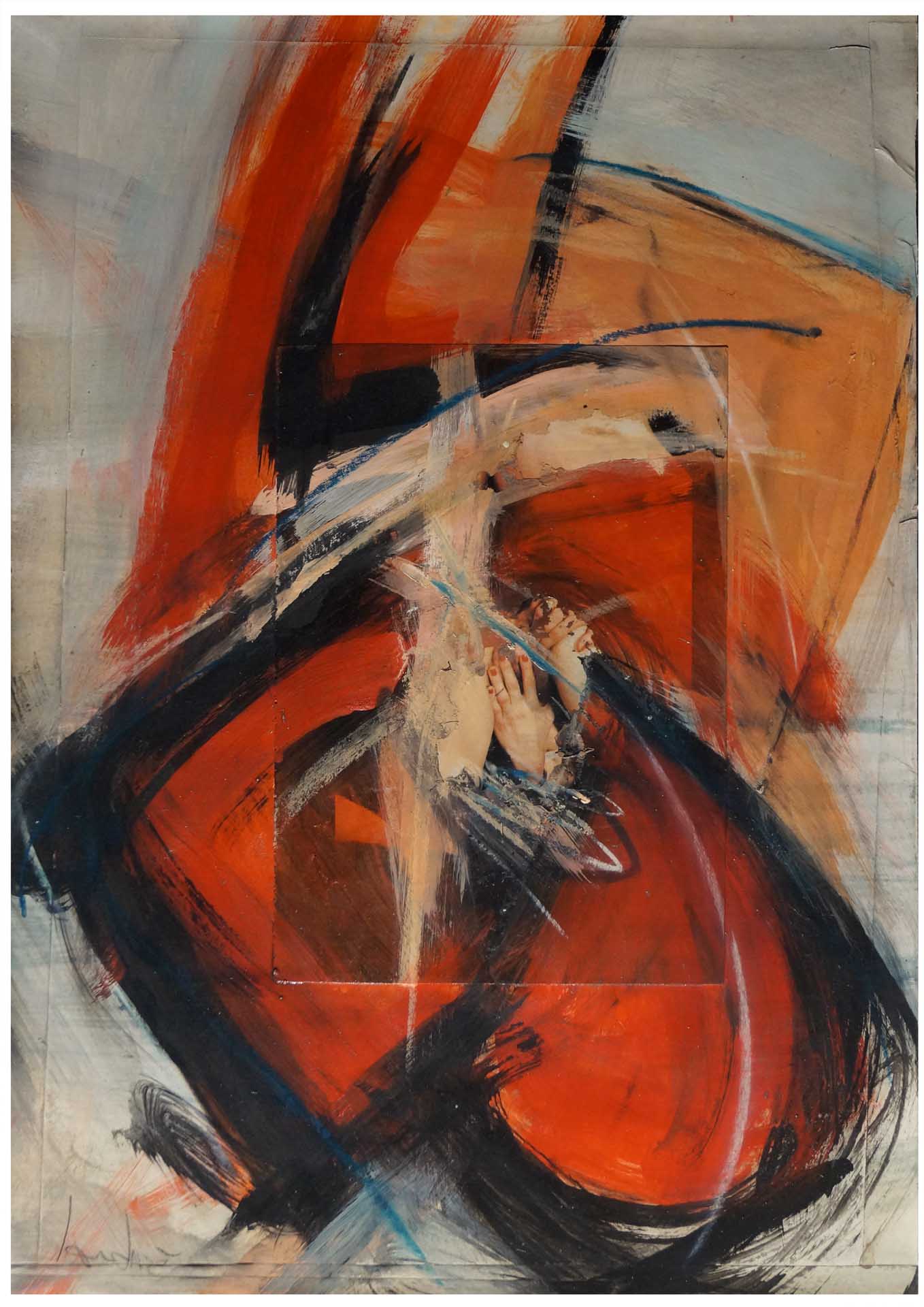 untitled, (red couple III – V), mixed media, painting, drawing on photography, 70 x 50 cm